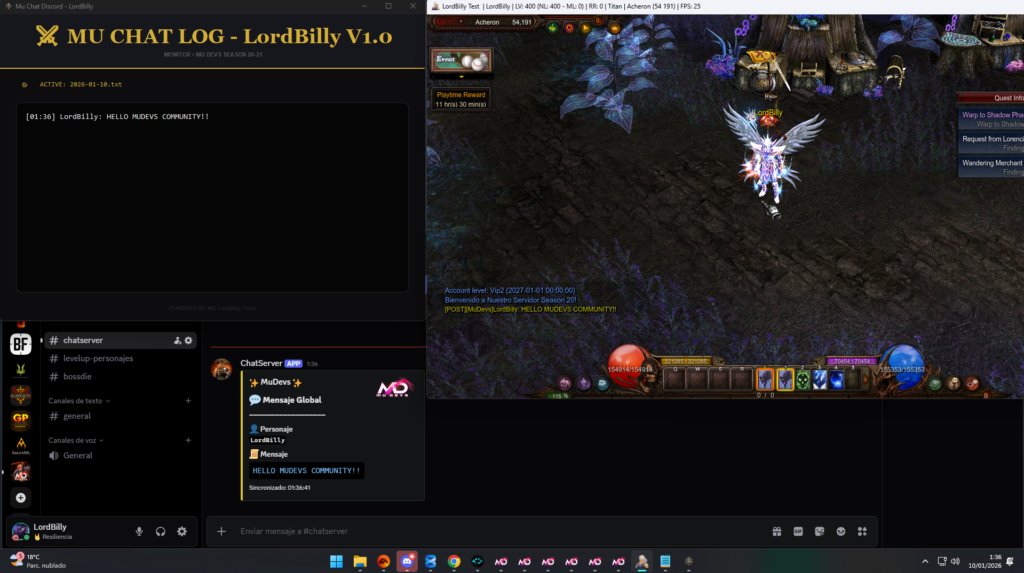 Hey everyone, how are you? I’m sharing this little program that reads the GS chat logs. It acts as a hook, sending the server’s chat messages in /post to your Discord channel. The .ini file is quite intuitive to understand and doesn’t require much experience to set up.